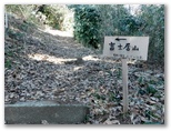 朝日寺の門前にやって来ました。「清正光」の看板を見て、「志田山朝日寺」が寺号で、その本尊が「清正光大薩埵」であることが解り、すっきりしました。せっかく目前にあるので、清正光を表敬することにします。参道は、約300段あるという石段。そのわきに注意書きがあり、寺には大きな声で吠える「ラン」という名の番犬がいる、というのです。実際に寺まで上ると、ランから激しく吠えられました。檻の中でストレスが溜まっているのかも知れません。