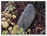 山頂には、東京府の石標と東京都の石標があります。東京府のものは、歯周病のように根が30cmほど露出していますが、それだけ山頂の土が削られたのでしょう。蕎麦粒山の山頂で見た三角点標も同じようになっていました。鍋割山には、「高山境界票」と彫られた石標もあります。青梅市と奥多摩町の境界かなと思いましたが、山頂から北に3分ほどの地点にも「高山境界票」がありました。現在そこは、市町村界ではありません。