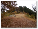 下山は裏参道の予定を変更して、丹三郎に向かいました。どこかで鍋割山をもう一度見ることができるはずです。すると大塚山巻き道の分岐付近から、鍋割山とその北尾根がよく見えました。山頂から北に、二つの小ピークを目でなぞると、まだ足に残る距離感とよく一致します。木の枝が邪魔なので、富士峰公園の階段を登って撮影しました。この分岐点にはベンチ・テーブルがあり、ひと際美しい紅葉が見られます。