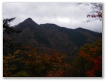 登山口の電気柵を通ると、立派なトイレ兼休憩所ができていました。正面に惣岳山が見えます。里道に入ると、ドウダンツツジが真っ赤に紅葉していました。鮮やかさなら、モミジもドンダンツツジには敵いません。古里駅の方向には、惣岳山に似た山が見えますが、ズマド山でしょうか。登る意欲をそそられます。登ればさらに上のピークに誘われ、終には川苔山まで行ってしまうのかも知れません。