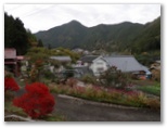 丹三郎屋敷は定休日でしたが、長屋門に置いてある、バザー商品のような小物を物色して楽しみました。万世橋から眺める紅葉は豪華版でしたが、「♪秋の夕日に照る山もみじ」でないのが残念。何せ、照っていません。でも歌のような情景は容易に想像できました。古里駅の跨線橋からは、キリッと立つ鳩ノ巣城山の稜線がきれいです。鳩ノ巣駅から大楢峠に行く人は、今後しばらくあの稜線で骨を折らねばなりません。