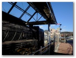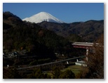 2018年12月19日(水) ◆快晴を期待して、展望の好い大野山へ。富士山は、はじめスッキリした姿を見せていたが、午前10時ころから次第に雲が広がり、背景の空も青から白に変わってしまった。◆他方、北の空は青いままで、丹沢山塊をきれいに展望することができた。山座同定も楽しめ、これがこの日最大の収穫。東面と南面の展望もまずまずだった。◆下山は初めての高杉コース。ところが高杉コースの分岐点に立つ道標は、道のないススキ原を指している。牧場道路への「立入禁止」看板に配慮したものかもしれないが、道迷いを誘いかねない。◆高杉コースでは、神明社から市間橋までコンクリート舗装で、橋から山北駅へはアスファルト舗装である。高杉と市間の山上集落以外には、さしたる見どころがなく、長い車道歩きで足が疲れた。その中で、新東名の建設現場は興味深かった。◆山北鉄道公園のD52は動態保存されていて、黒々としたメカから潤滑油の臭いがした。愛称は「でごにい」と言うようだ。◆さくらの湯は、ゆず湯だった。ユズの香りの漂う浴槽は、ささやかな幸せをくれる。体も心もよく温まった。