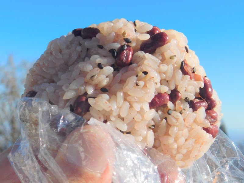 -- 大山山頂にて、赤飯おにぎり+ごま塩。