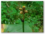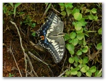 さて、北尾根にもセミの声はありませんでした。でも木の幹や葉の陰にいるかも知れないので、ていねいにセミを探しながら歩いて行きます。すると、アサギマダラがふわり、ふわりと飛びながら、イケマ(タンザワイケマ)に下りました。産卵に来たのでしょう。アサギマダラは幼虫時代にガガイモ、キジョランなどの有毒植物を食べ、体内に毒を蓄えます。北尾根にもキアゲハがいましたが、山には幼虫の食草であるセリ科の植物が結構あります。