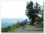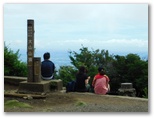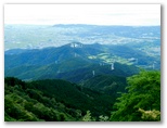 大山参道は荒れて、岩石がゴロゴロ露出しています。でも10分ほど歩くと、あっさり山頂に到りました。関東平野と海に目が行きます。きょうは海の輝きはありませんが、東京湾の彼方に房総半島をうっすらと望めました。東京スカイツリーや筑波山も、どうにか認められます。とその時、山頂の木でエゾゼミが鳴き始めました。ギ――とも、ビ――とも聞こえる単調な連続音。姿を探しても、高いところにいるので、見つかりません。人が来たら、鳴き止んでしまいました。