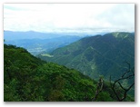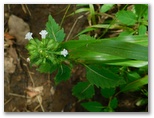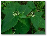 その後、山頂の西側を巡ってみたのですが、セミの声が聞こえなかったので、北尾根を探索してみることにしました。電波塔群の間を抜け、脚立を越えて、北に進みます。するとイケマの小さな白い花が咲いていました。帰宅後に調べると、北尾根で見たイケマは、すべてタンザワイケマのようです。この辺り、西面に優れた展望があり、二ノ塔、丹沢三峰を含む広大なパノラマを望めました。ただこの日は、塔ノ岳から丹沢山に連なる主脈稜線は、雲の中。残念でした。