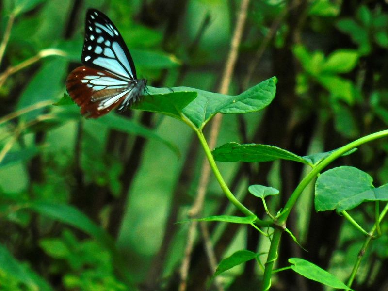 -- タンザワイケマに産卵するアサギマダラ。 11:43