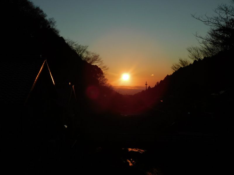 -- 猪俣橋より望む、朝の太陽。7:00