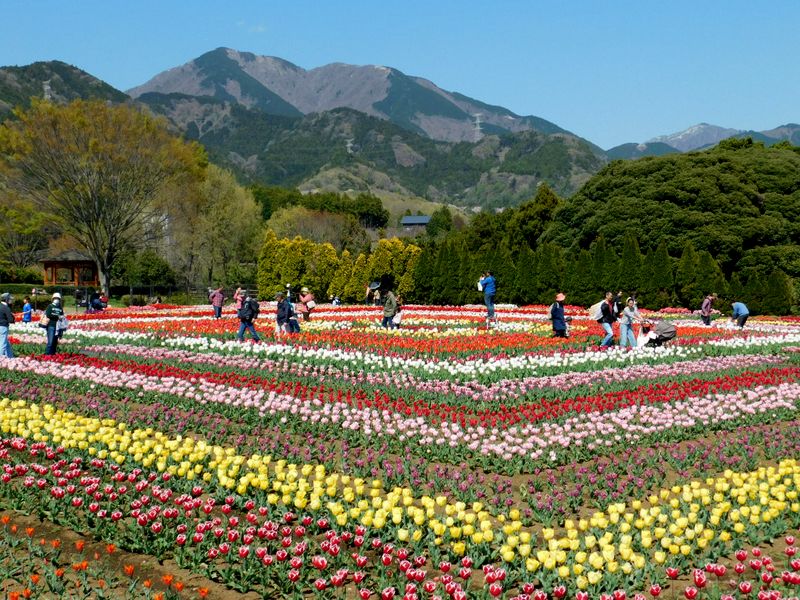 -- チューリップ園展望台より、三ノ塔・二ノ塔、大山。13:43