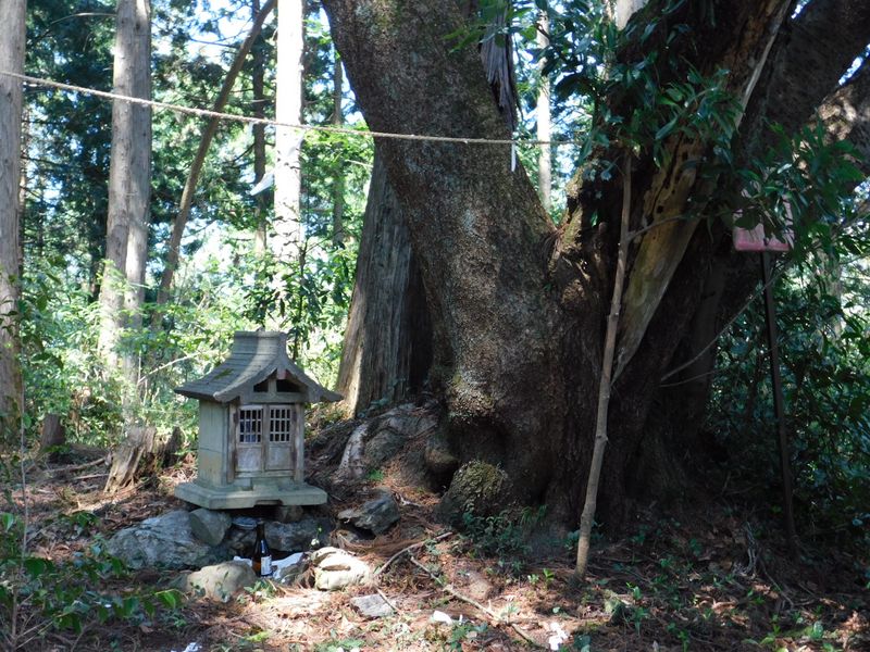 -- ヤマザクラの下に祠と酒瓶。12:31