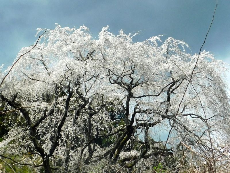 -- 神明神社の先に、大きなシダレザクラが見えてきた。