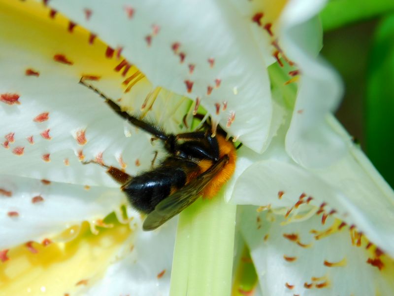 -- ヤマユリの花に潜り込む、トラマルハナバチ。
