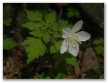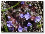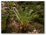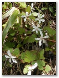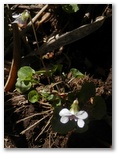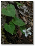 湖畔に向かって北に下って行くと、樹間に本栖湖が幾度となく望めました。湖水の青色がとてもきれいです。やがてそれも見えなくなると、山の地面に関心が行き、シダ、シコクスミレ、フタバアオイなど、日陰の似合う草が生えていました。登りが陽性の道だったので、下りに陰性の道を歩いて、心の栄養バランスも取れたと思います。