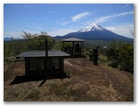 南東には、天子山脈の雨ヶ岳とタカデッキ。一見、竜ヶ岳に隣接していてすぐ登れそうにも思いましたが、端足峠(はしたとうげ)まで200m以上下って、500m以上登らねば、雨ヶ岳にも行けません。でもこの距離から見てしまったので、「登りたい山」になりました。いつの日になるか分かりませんが、晴れた日に毛無山と合わせて縦走したら、人生の一記念日になりそうな気がします。周囲の山々を撮影してから、ベンチに腰を下ろし、昼食にしました。