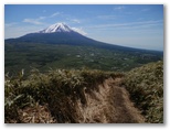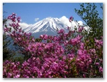 端足峠から本栖湖に向かって下り始めると、富士山が見えなくなるので、この峠でもう一度しっかりと目に焼き付けます。熟年のご夫婦のご主人の方が富士山を見ながら、「ああ、いいなあ!」と静かに感嘆していました。「一期一会」という言葉が胸を過ぎります。当たり前ですが、きょう登った私たちが記憶するのは、きょうの富士山です。その記憶倉庫の引き出しには、芝桜とトウゴクミツバツツジの色をした、小さなリボンが結ばれました。