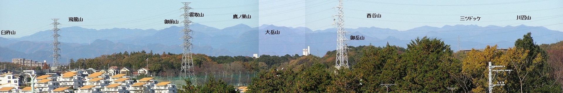 横浜市と町田市の境界、成瀬尾根から望んだ初冬の奥多摩。横に拡げてご覧ください。(サイズ:1920×320px) |
