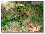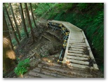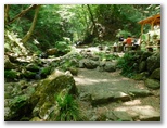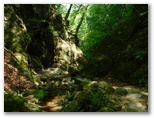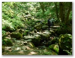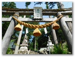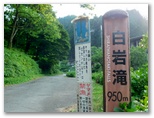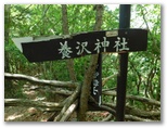 大岳鍾乳洞入口でバスを降りると、ミスジチョウがひらひらと飛んできて、目の前の養沢神社の石段に止まりました。山間の渓流域に来たことを実感させる、お迎えの蝶です。私の他に、1組の男女がバスを降りましたが、女性が神社のトイレに入ろうとして、何かためらっているようでした。私は境内に行き、念入りに準備運動をします。そして、手に提げて来た厚手の靴下2足と、トレッキングシューズを履きました。神社の右奥に、登山道の取り付き点が見えています。