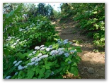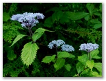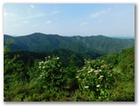 サルギ尾根は一般向きのハイキングコースですが、養沢神社からいきなり大変な急登です。私は時々準備運動をさぼりますが、今回は入念にやって良かったと思いました。予想を上回る急登ですが、養沢神社を振り返ると、ぐんぐん増して行く高度感が気持ちいいほどです。登山道の周辺にはコアジサイが咲き始めて、涼し気な水色の花を見せていました。またこれから先ずっと、マルバウツギ、ガクウツギ、コアジサイなどの白い花を見ることになります。