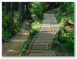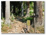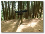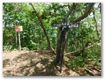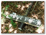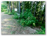 緑陰の登山道には、爽やかな空気がありました。家で冷凍してきた、塩分入り清涼飲料水をこまめに飲みます。飲むとすぐに汗が出て、そよ風がひんやりと、体を労わってくれるようでした。体感はしませんが、すでに体の水分がかなり失われているのかも知れません。きょう、明るい尾根歩きではなく、涼しい尾根歩きを選んだのは、大正解だったようです。養沢神社から40分ほど登ると小峰があり、木の幹の高いところに「大名子ノ頭 656m」の私製標識がありました。