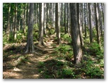 杉、檜、栂などの針葉樹と、コナラ、ミズナラ、アセビなど広葉樹の混交林を登って行きます。今、奥多摩は濃緑の季節。地面をフカフカにしてくれる針葉樹は、独特の香りを漂わせて森林浴ムードを醸します。他方、広葉樹は美しい緑色の葉で安らぎを与え、頑強な根で山の土を守ってくれます。尾根すじに並び立つ常緑照葉樹は、規模によっては防火壁のような効果もあるらしい。詳しくは知りませんが、いずれも山の住人として、互いに護り合っているのでしょう。