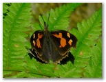 11時30分、展望台に到着。山頂ではありませんが、達成感があります。展望は、これぞ展望台と言える素晴らしいもので、男具那ノ峰(奥ノ院)から時計回りに、御岳山、日の出山、麻生山、金比羅尾根、関東平野、馬頭刈尾根、大岳山まで、視界を遮るものが何もありません。強いて言えば、鍋割山が見えにくいことくらい。蝶たちも入れ替わり立ち替わりやって来ます。アカタテハが私の右手親指の爪に止まりましたが、爪は汗をかきません。すぐに飛んで行きました。