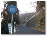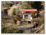 ピカピカの新しそうな鎖が設置されている場所を過ぎ、短い鉄階段を下りて右折すると、登山道の終点が見えました。小沢を渡る短い橋があります。きょうの山歩きでお世話になった、現地調達の杖(木の枝)を、橋のたもとに置きました。これより駅まで舗装道路を歩きます。浅利川右岸のバス道路に出ると、きれいな流れを見下ろしながら、テクテク行くばかりなのですが、歩道がないので、車に注意しましょう。浅利公民館のすぐ先で、花咲山への道を右に分けます。