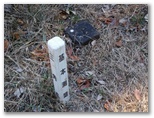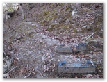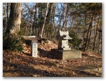気合を入れて急登に差し掛かりましたが、思ったよりも登りやすく感じました。気分よく高度を稼いで行きます。100mほど登ると、赤く塗られた石祠がありました。御神木のような木も立っています。そこから少し登って、右から来る尾根を合わせると、灰焼場に到着。短い2本のコンクリート杭と黄色のプラ杭とが固め打ちされています。どこかに灰焼場の名が書かれていないか探しましたが、何も見つかりませんでした。ところで灰焼場とは、どんな意味でしょうか?