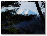 その後、樹木の枝越しに、しばしば周囲の山なみを望めるようになりますが、無理して撮影する必要はありません。歩いている尾根のすぐ左手に鉄塔5号を見ると、間もなく「富士山景勝地」だからです。到着した時、すでに富士山は半逆光になっていましたが、それでもなお素晴らしい景観に見とれてしまいました。うるさい樹木の枝や電線など一切なく、のびのびとした開放感を味わえる場所です。そしてもう既に、鉄塔4号の立つ向山(標高730m+)が目と鼻の先でした。