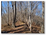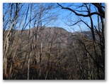 灰焼場からは、セーメーバン東尾根を歩きます。再び稜線漫歩になりました。一部に尾根の細くなる区間もありますが、概して幅広で明るい美尾根です。北面の宮地山も、より近くに望めるようになりました。その稜線からは、きっと楢ノ木尾根や、雁ヶ腹摺山などもよく見えることでしょう。いつか大垈山と合わせて歩いてみたいと思います。そのためには、きょうのように風が穏やかで、明るい冬枯れの日を選んでやって来ましょう。なるべく楽なコース設定で。