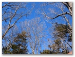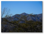 セーメーバンには展望がないという記事もありますが、冬枯れの今は開放感もあり、好ましい山頂だと思いました。ベンチの類はありませんが、転がった木に腰を下ろし、お茶とおやつにします。三角点石は、文字が北向きで読みにくかったのですが、三等と読めました。見上げれば木々の白い梢が、明るく青い空に映えてきれいです。北面を少し散策すると、白谷ノ丸、黒岳、滝子山などを望めました。あの峰々に次回登ったら、このセーメーバンを探してみましょう。