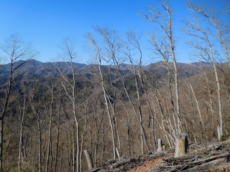 -- 西面に、黒岳(右端)から滝子山まで。11:01