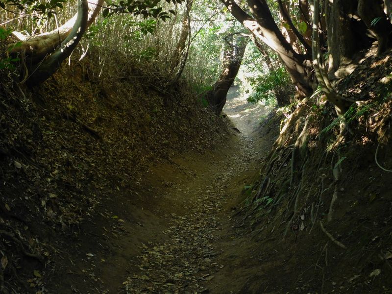 -- U字溝のような道を下る。