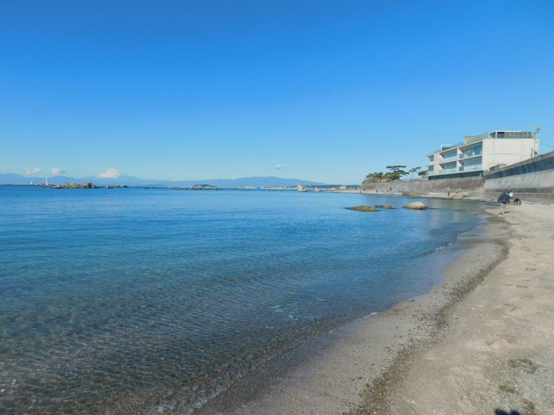 -- 真名瀬海岸の砂浜を、逗子方向に歩く。