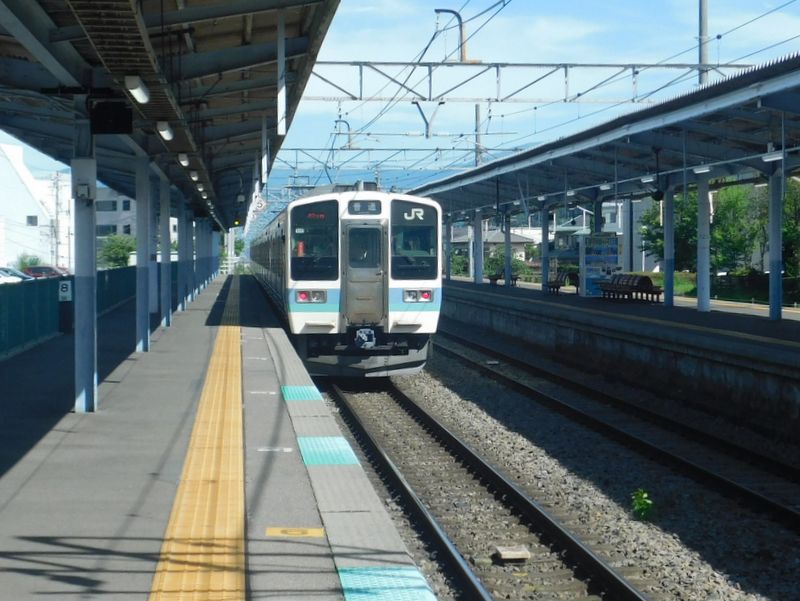 -- 茅野駅で、松本行き普通列車を見送る。8:49