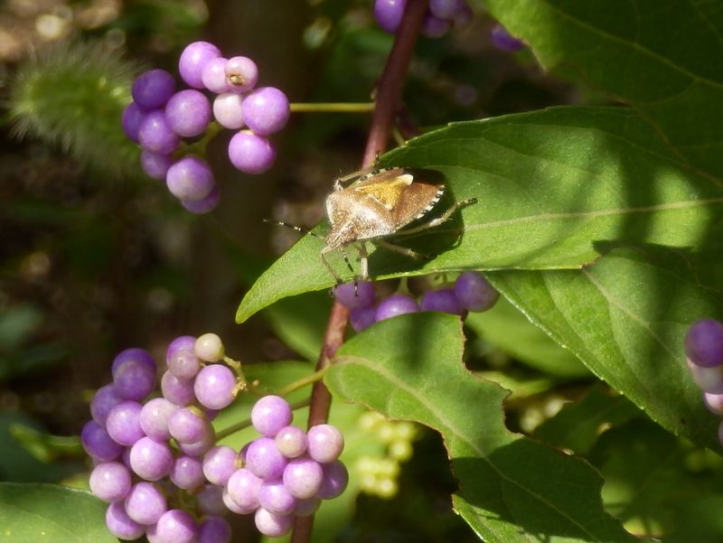 -- コムラサキとブチヒゲカメムシ。