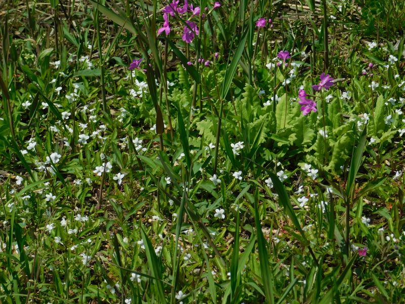 -- サクラソウと白花のすみれ。