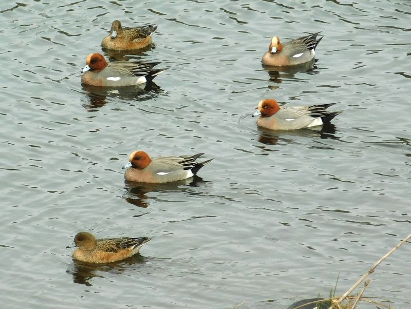-- ヒドリガモの♂4羽と♀2羽。13:55