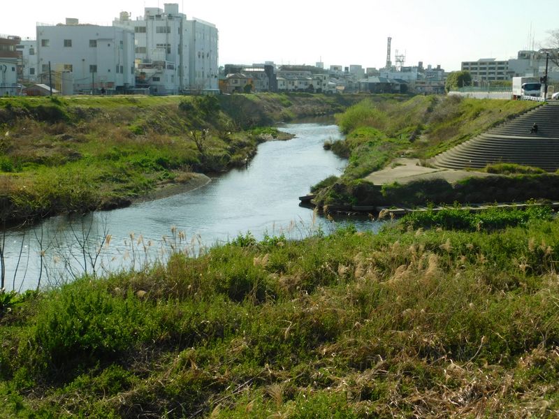 -- 恩田川(正面)が合流する地点。15:13