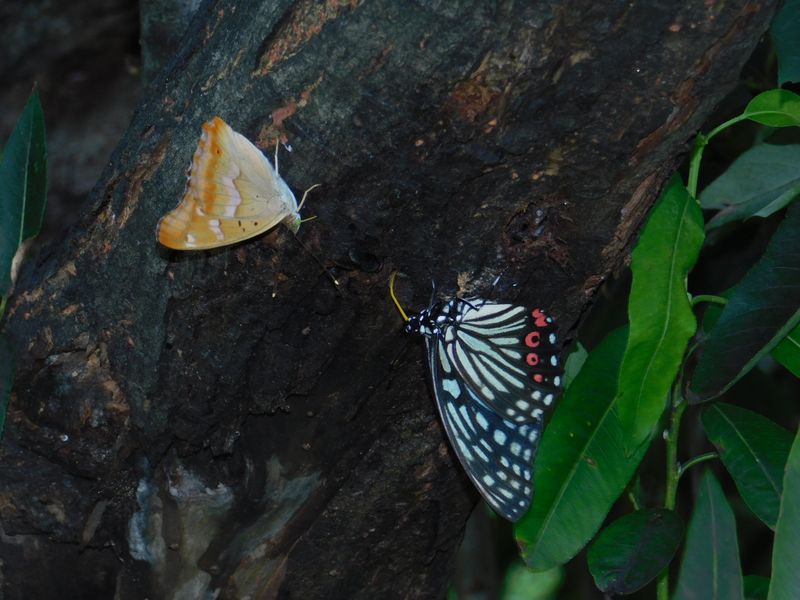 -- コムラサキ(左)とアカボシゴマダラ夏型。
