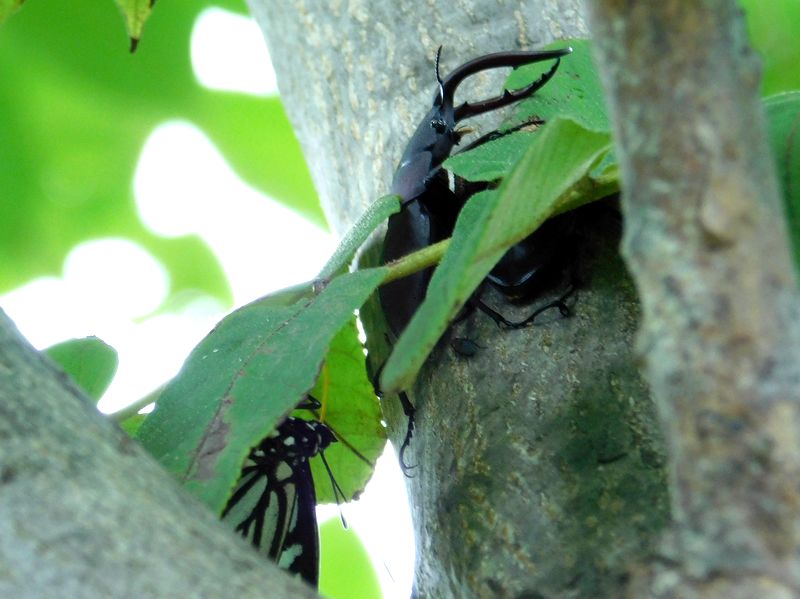 -- ノコギリクワガタ♂の右に、もう1頭のお尻が見える。