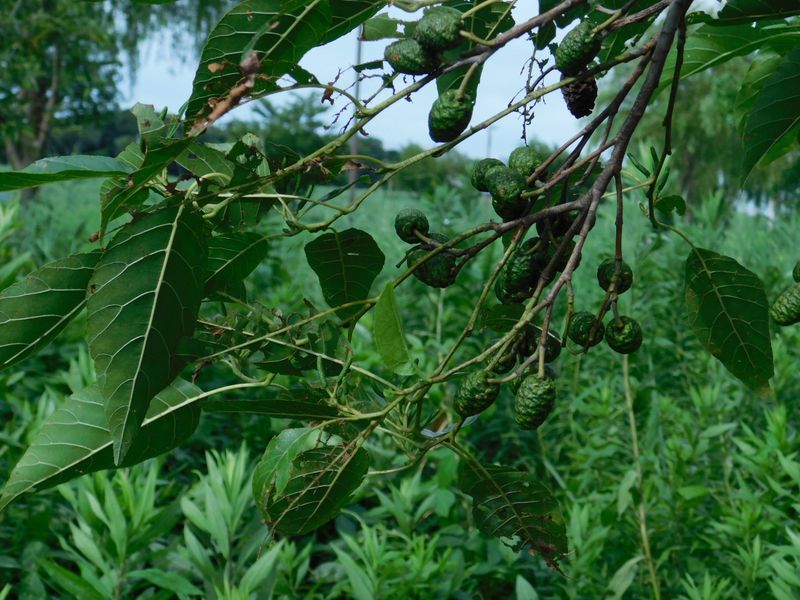 -- コガネムシに葉を食われたハンノキ。