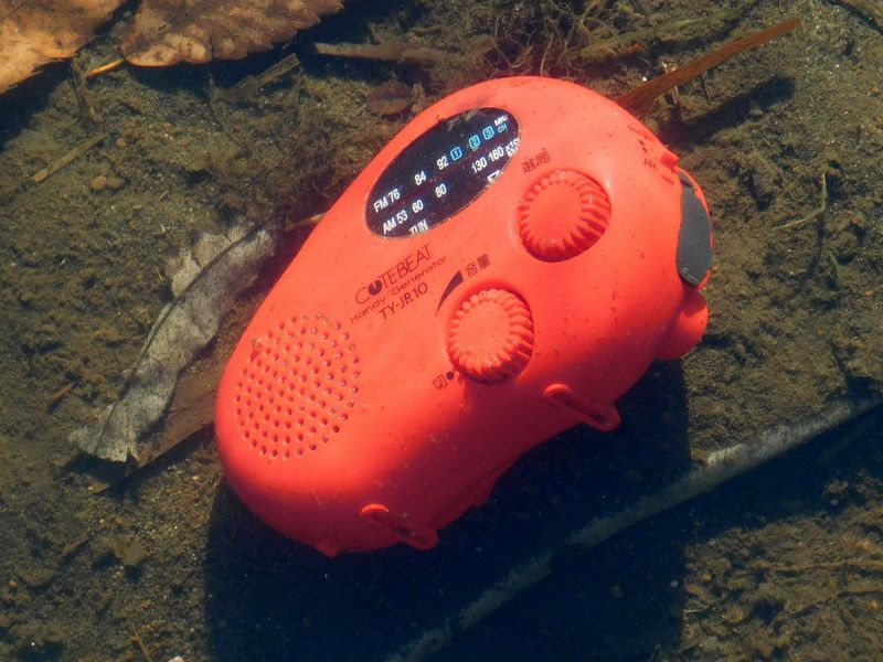 -- 鶴見川、水中にラジオ。防水型。