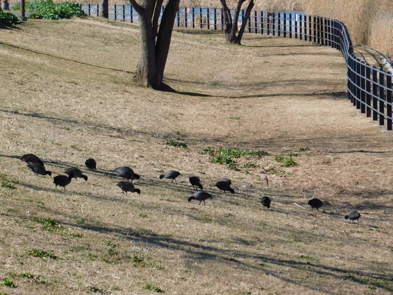 -- 上陸した、オオバンの群れ。13:45