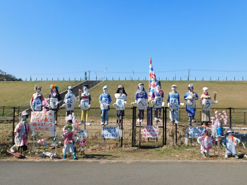 -- 横浜 F・マリノスの旗と、かかしチーム。