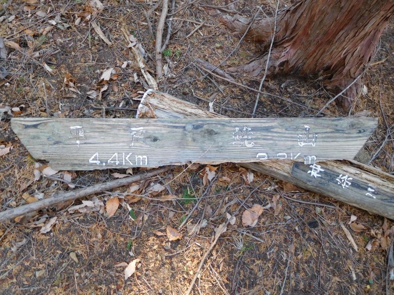 -- 朽ちた道標。平戸4.4km、焼山2.3km。13:42
