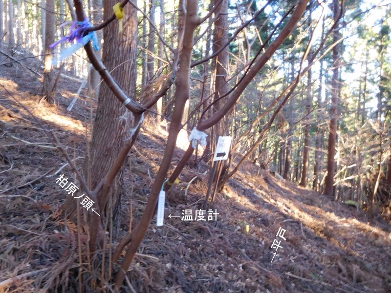 -- 屈曲点。左の尾根直登で柏原ノ頭。15:28