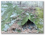 その橋を越えると、道が荒れ始めました。四駆車でないと走り難そうですが、歩く分には全く問題ありませ。相変わらず上からの落石には要注意。そして船窪林道起点から正味20分ほどで、百間干場に到着しました。この地名は、どんな由来があるのでしょうか。私がここに来るのは13年ぶり。先回は金山鉱泉経由の谷道で、金山峠を越えて来ました。きょうは奈良子から延々と歩いてきて、あまり登ったような感覚がありませんが、標高はすでに1,000mを超えています。