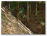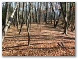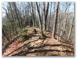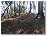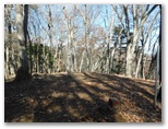 さて、セーメーバン南稜の下りは、最初の約50m(標高差)がやや急峻です。落ち葉のない季節なら特に問題はありませんが、きょうここまで歩いてきて、転倒や滑落を防ぐため、相当に慎重な歩きを要することが分りました。そこで、時間のゆとりを持って、早めに山頂を発つことにします。山頂に誰かが置いていった棒があったので、これを杖代わりにして、おもむろに下り始めました。過去に2回下った経験から、小股でゆっくりと、ブレーキの利く状態を保っていきます。