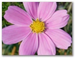 バスの時刻と時間調整をしながら歩き、サクラ沢峠から約25分で林道奥山線に下り立ちました。ヤマレコでは「セーメーバン登山口」と呼ばれる地点です。ちなみに、ここの道標には「セイメイバン」と書かれています。林道を少し下って、金山本沢橋を渡ると、鉱泉の建物と人が見え、人里に帰って来たんだなあと思いました。そこからは金山林道をゆるやかに下って、遅能戸バス停に無事ゴールイン。迎えてくれたのは一輪咲きのコスモス。可憐でした。バスは8分後です。