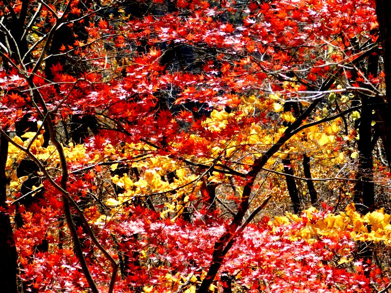 -- ところどころに紅葉や黄葉が。